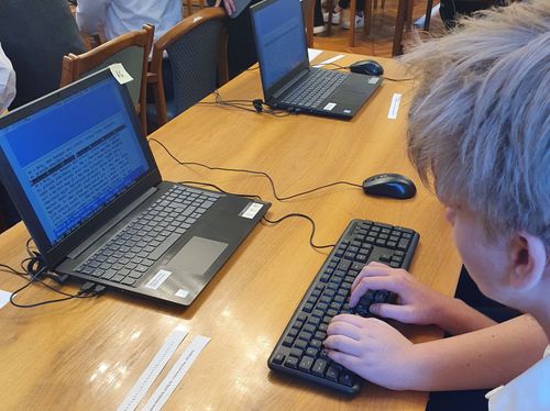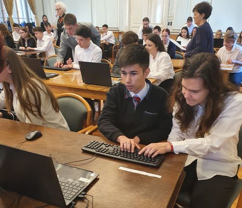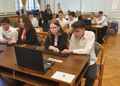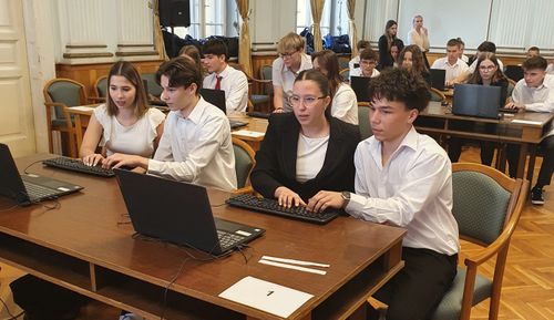 A gépíróversenyen két szegedi technikum diákjai vettek részt. Bár a feladatok játékosak voltak, de a versenyzők azt is megtapasztalhatták, milyen felelősséggel jár egy hivatalos dokumentum elkészítése.